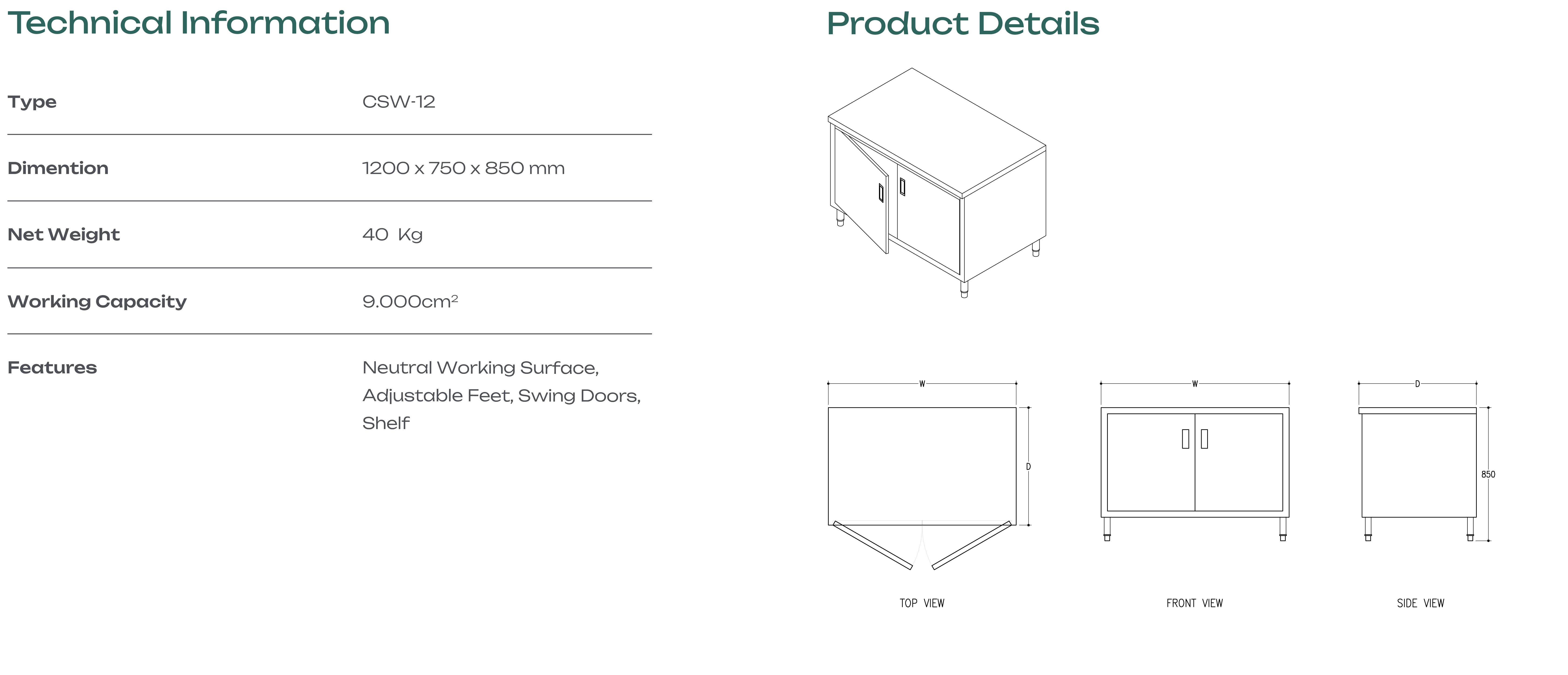 Counter cabinet made of rustproof high quality iron and made to last. Using this item for storing your food and equipment with sliding door, makes everything easier and effi cient.
