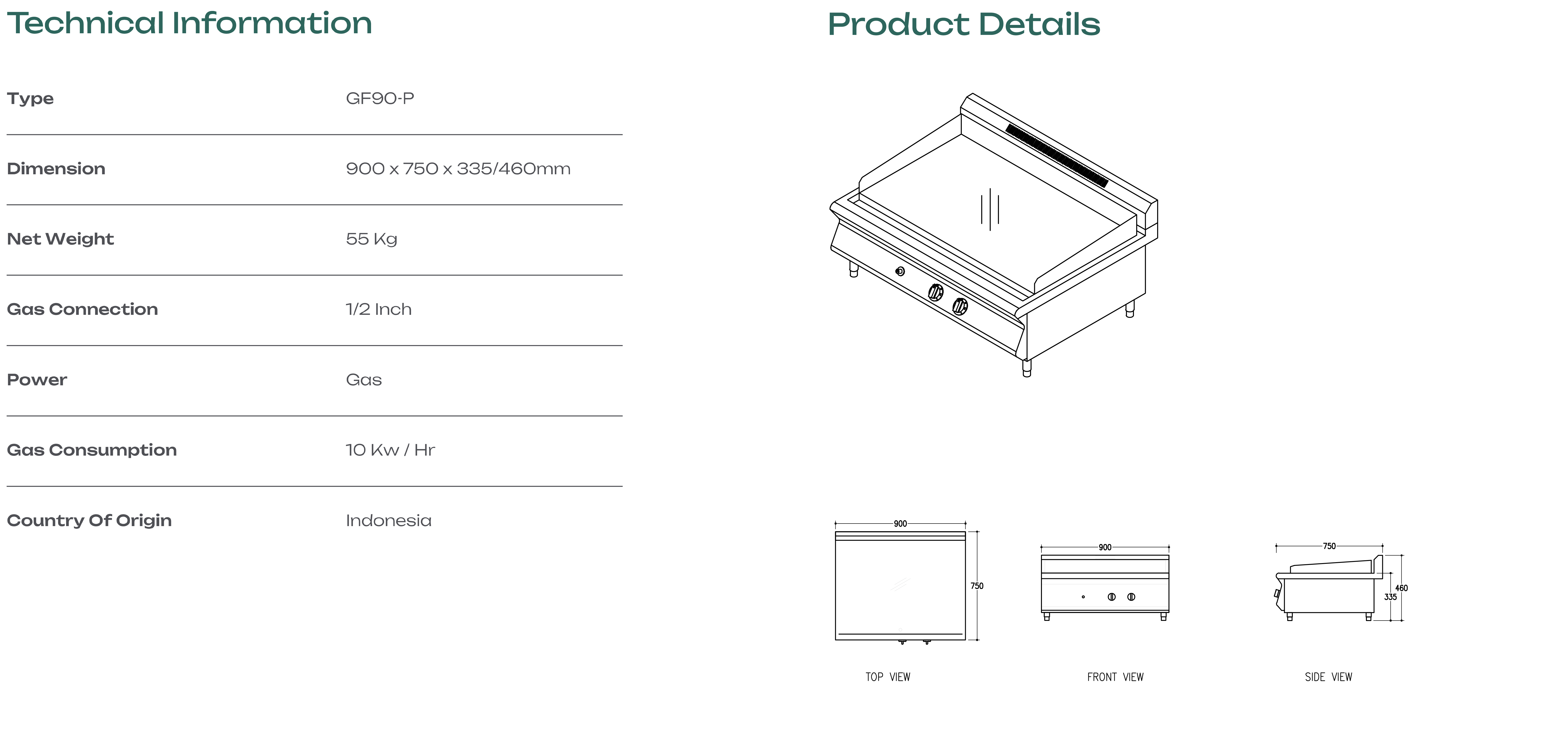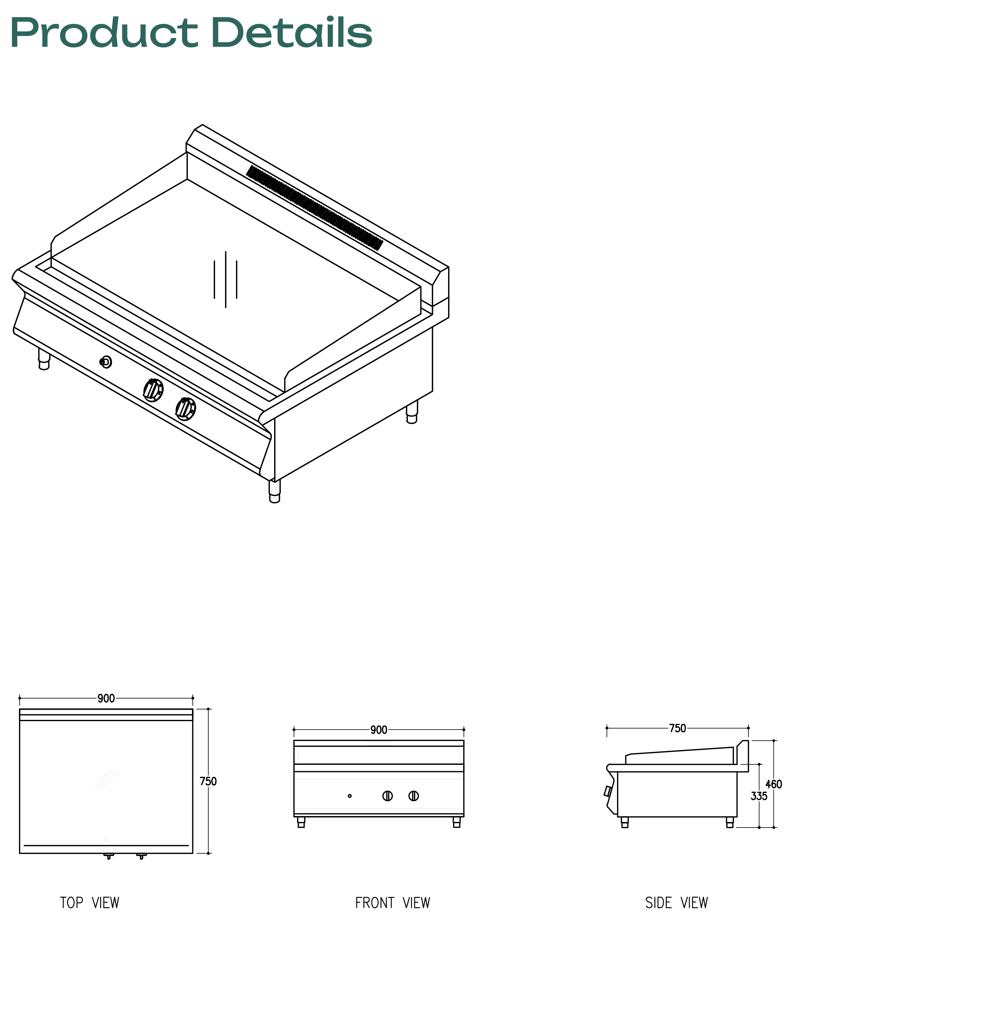 The Portable Gas Flat Griddle unit is space effi cient, designed specifi cally for your kitchen countertop and allows you to maximize every inch of work space. Ideal for cooking burgers, pancakes, vegetables skewers. Equipped with Flame Failure Device, Ignitor Piezzo and adjustable Leveling Feet.