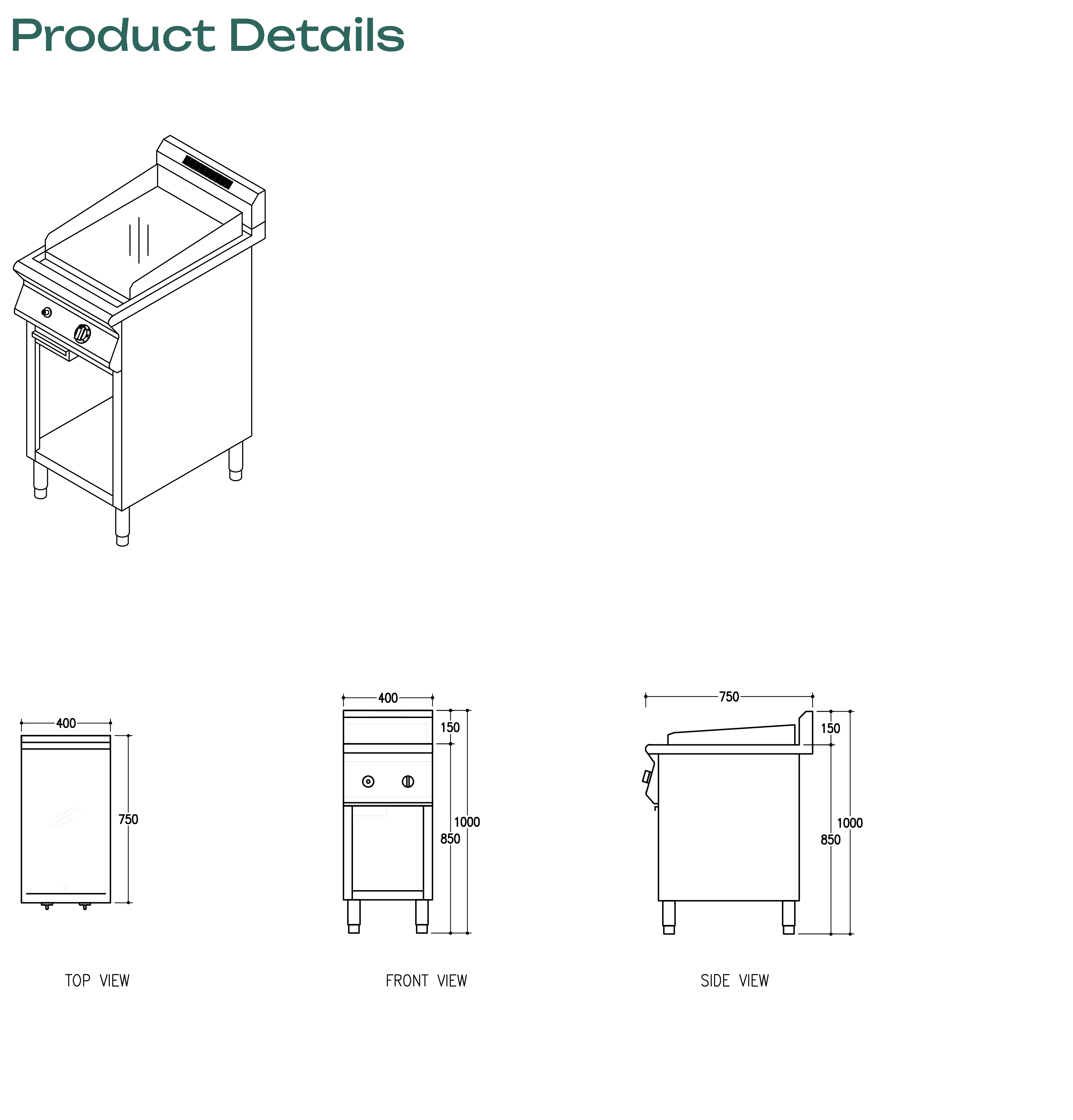 The Gas Flat Griddle Cabinet is convenient equipment combination is great for any kitchen that wants to streamline their food prep process providing refrigerated storage space, a griddle for cooking, and place for the griddle to sit. You can keep a variety of ingredients in the chef base, pull them out for an order, and grill it all within the same workspace. powered with U Burners. Equipped with Flame Failure Device, Ignitor Piezzo and adjustable Leveling Feet.