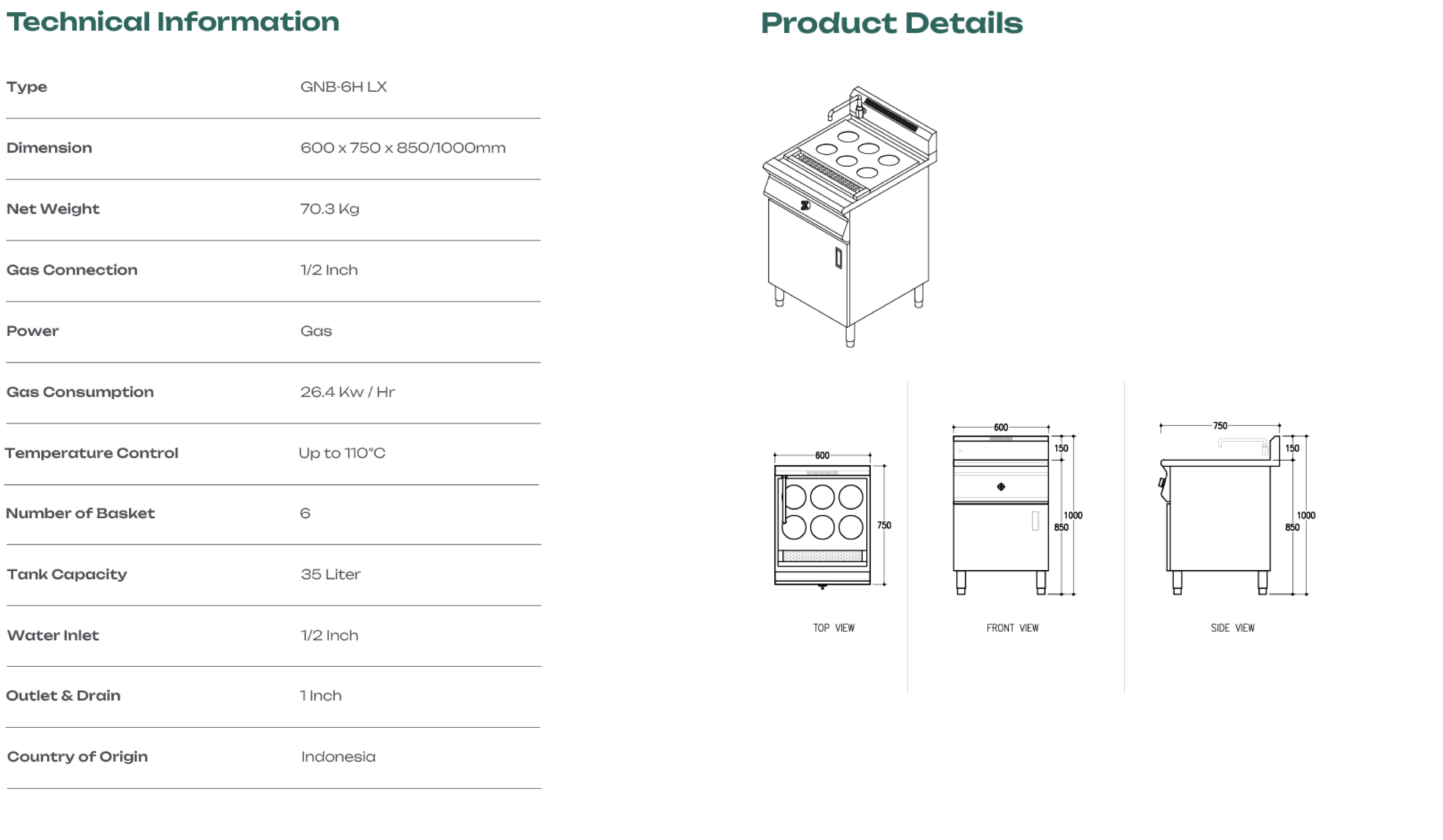 Pasta service just got easier and faster with this Gas Noodle Boiler that comes with numerous type. With easy to-use controls, convenient features, and solid stainless steel construction, this unit is a must-have, it’s perfect for restaurants, hotels, and catering companies. Equipped with flame failure device and adjustable Leveling Feet.