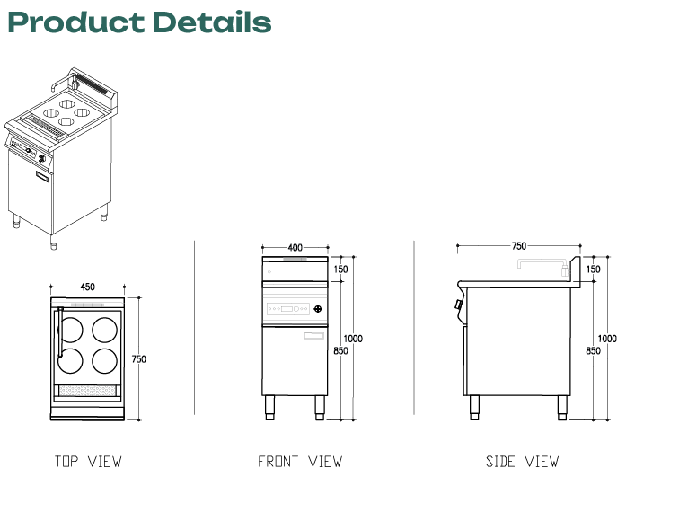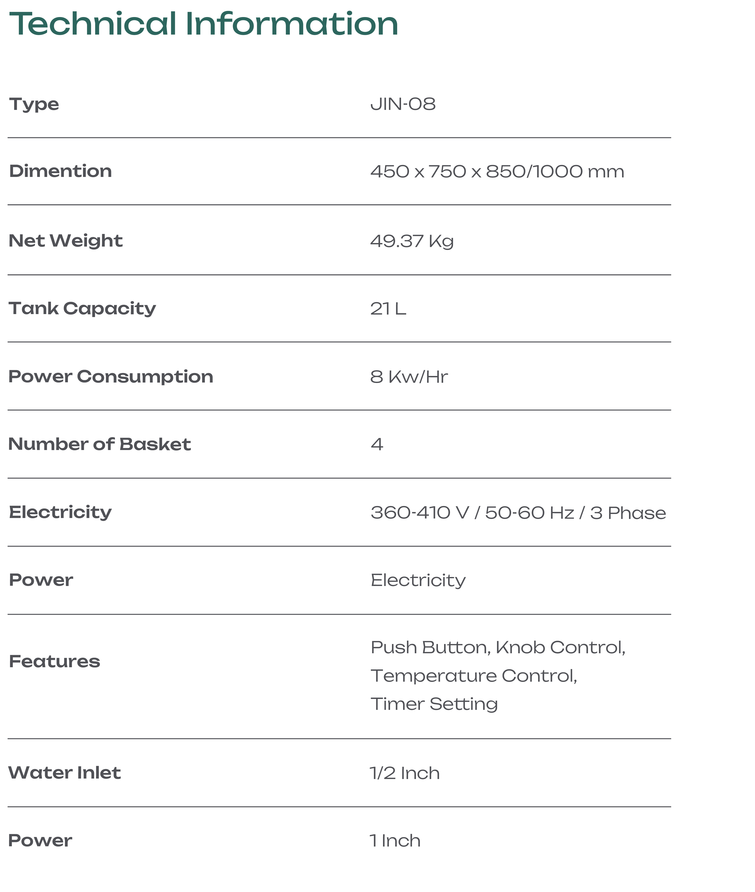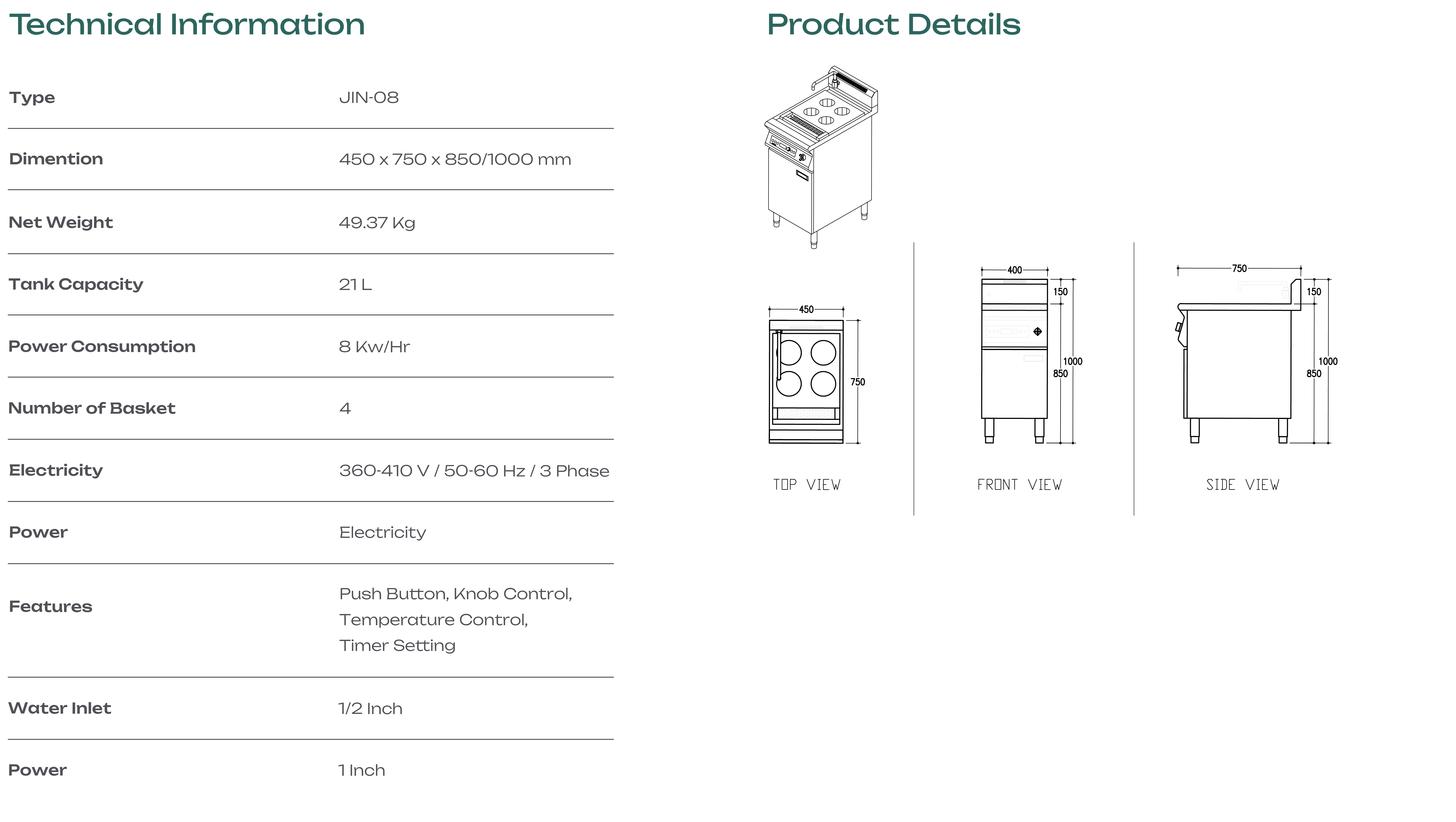 Cooking noodle or pasta made easy with this device. Consistently producing high quality pasta / noodle what is delicious and al dente. Equipped with digital control panel, LED Display and knob for easy usage. This device is also build with water faucet for easy water supply and effi cient water disposable system. This device also come with automatic heat sensor to control your water temperature inside the tank .